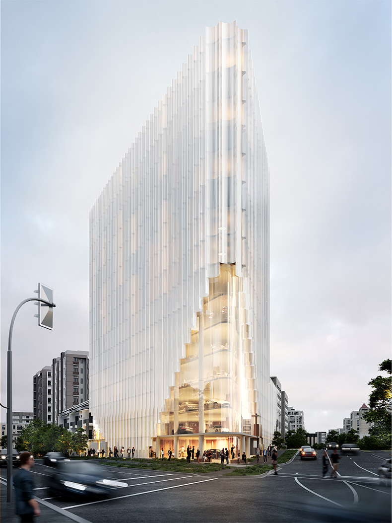 Our solution cleverly navigates the detailed aspirations of the local planning scheme to achieve a statement response that triumphantly breaks the pervading monotony along this stretch of road.