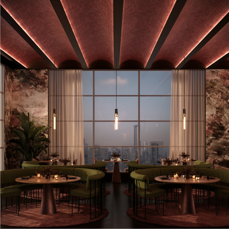 Together, the space embodies a dialogue between restraint and expression—where precision meets passion, and architecture becomes a reflection of the layered, cross-cultural culinary experience.