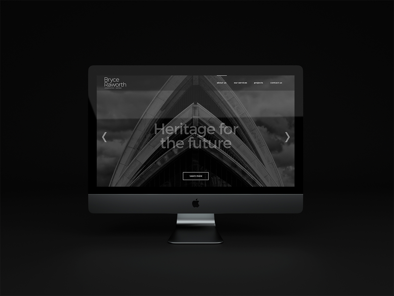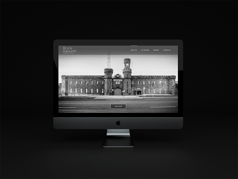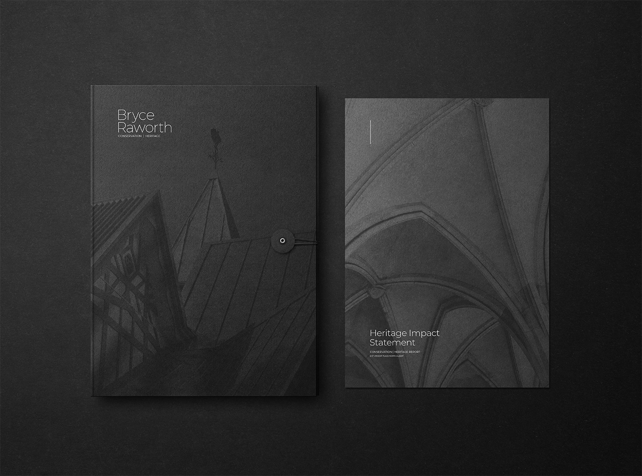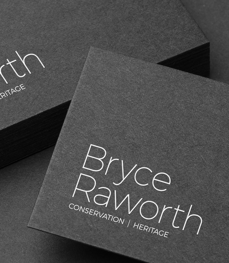 The logotype for Bryce Raworth has been designed with a spartan purity that never tries to compete with the noteworthy and majestic heritage buildings the firm restores. Striking monotone images focus on the built form without the distraction of colour.