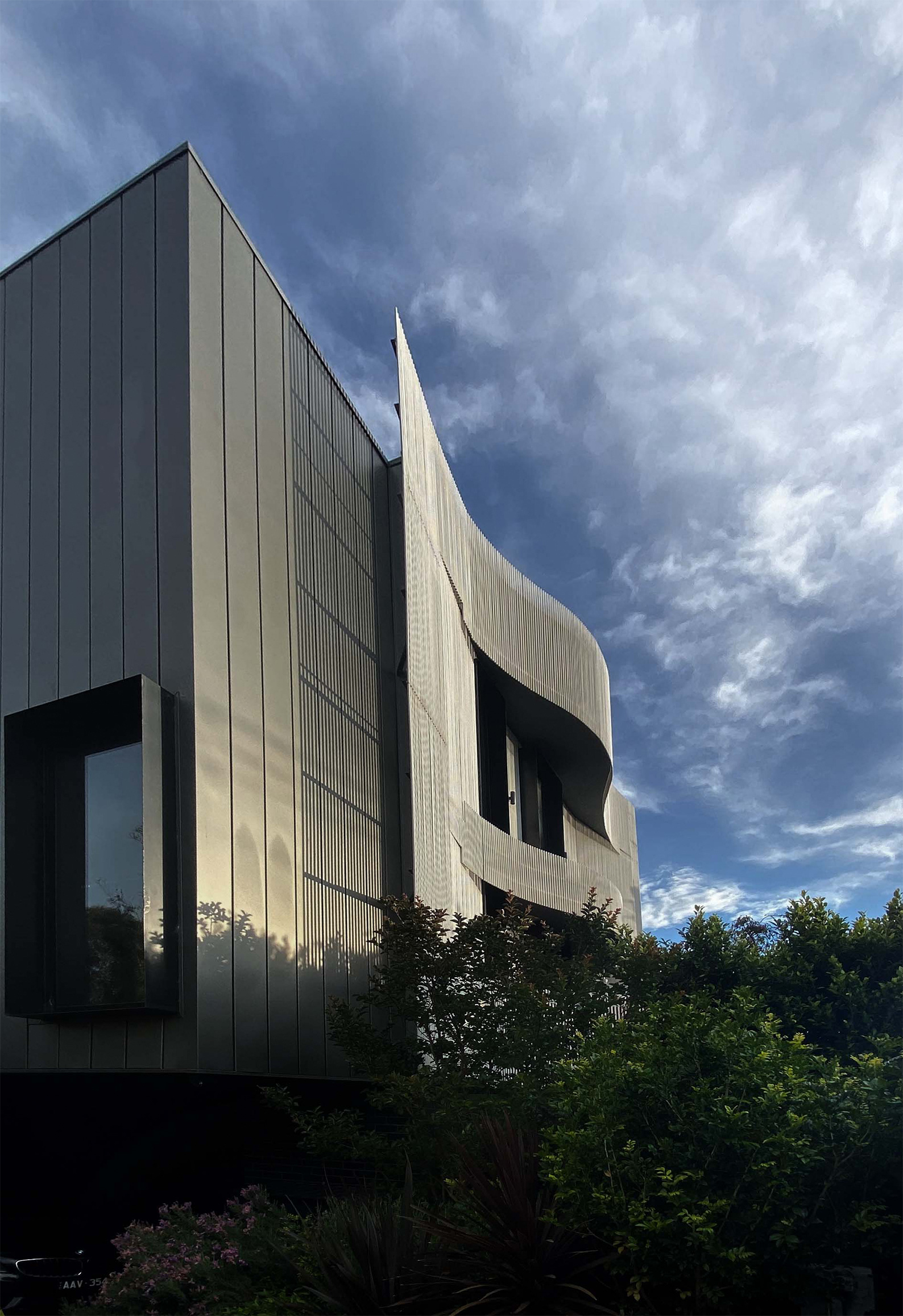 zinc-clad exterior complements the dynamic architectural form,