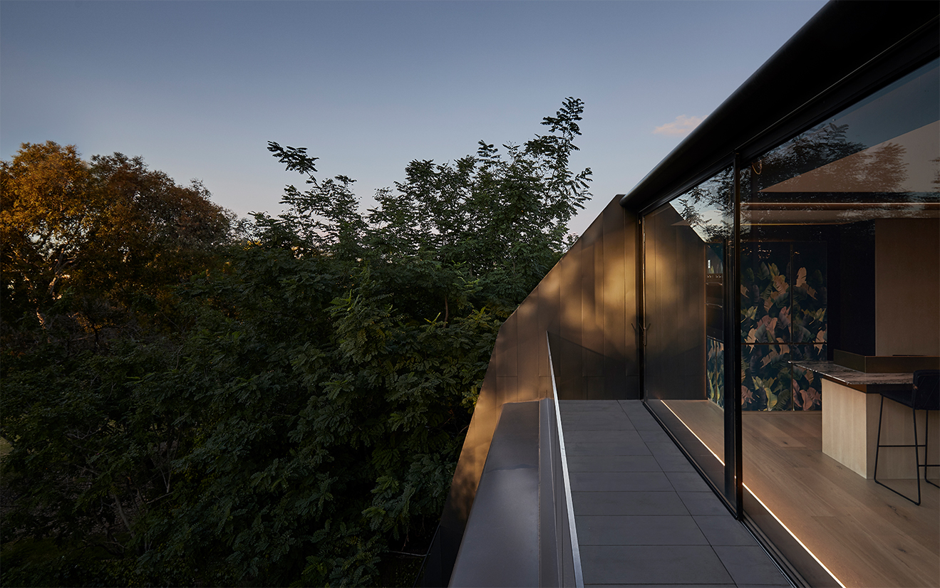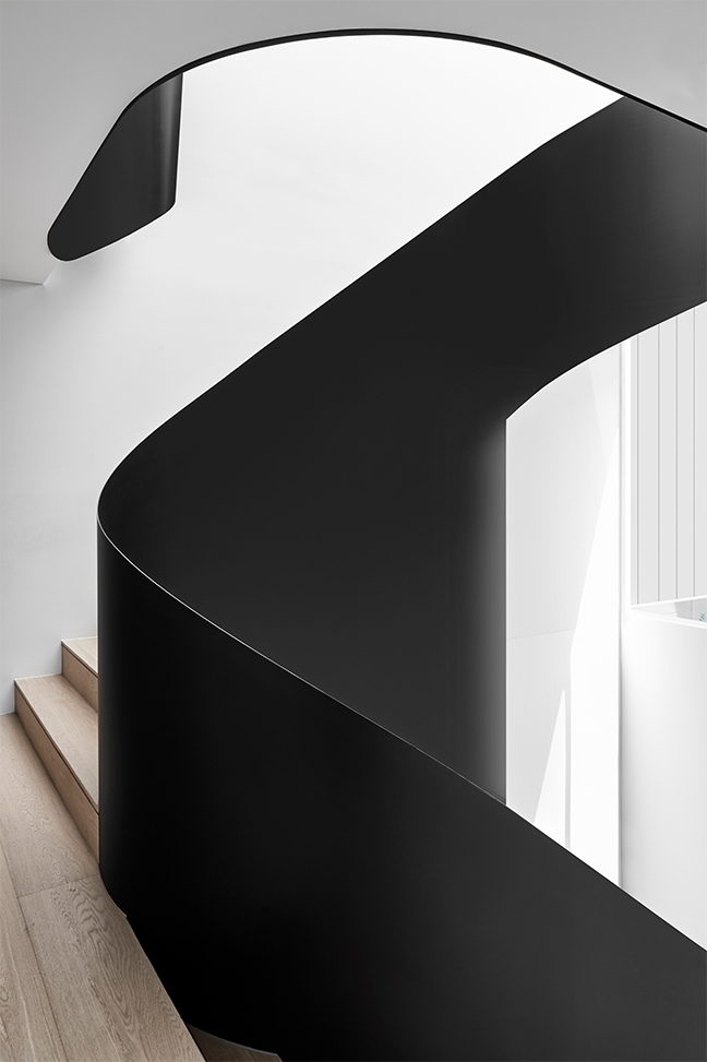 Moulded steel balustrades connect the floors internally, making a striking design statement. Despite the presence of luxury fixtures, fittings and surfaces, there is an overarching sense of sophisticated restraint.