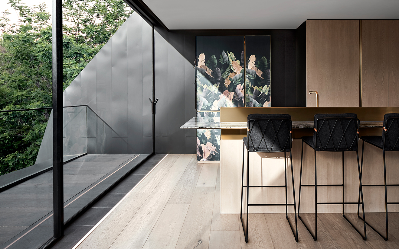 Fine details and custom features are hallmarks of the interior. Floor to ceiling windows maximise views and flood the apartment in glorious sunlight, while the open plan design allows for natural ventilation. Warm timber tones in the flooring and cabinetry capture the essence of the apartment’s bushy, riverside setting.