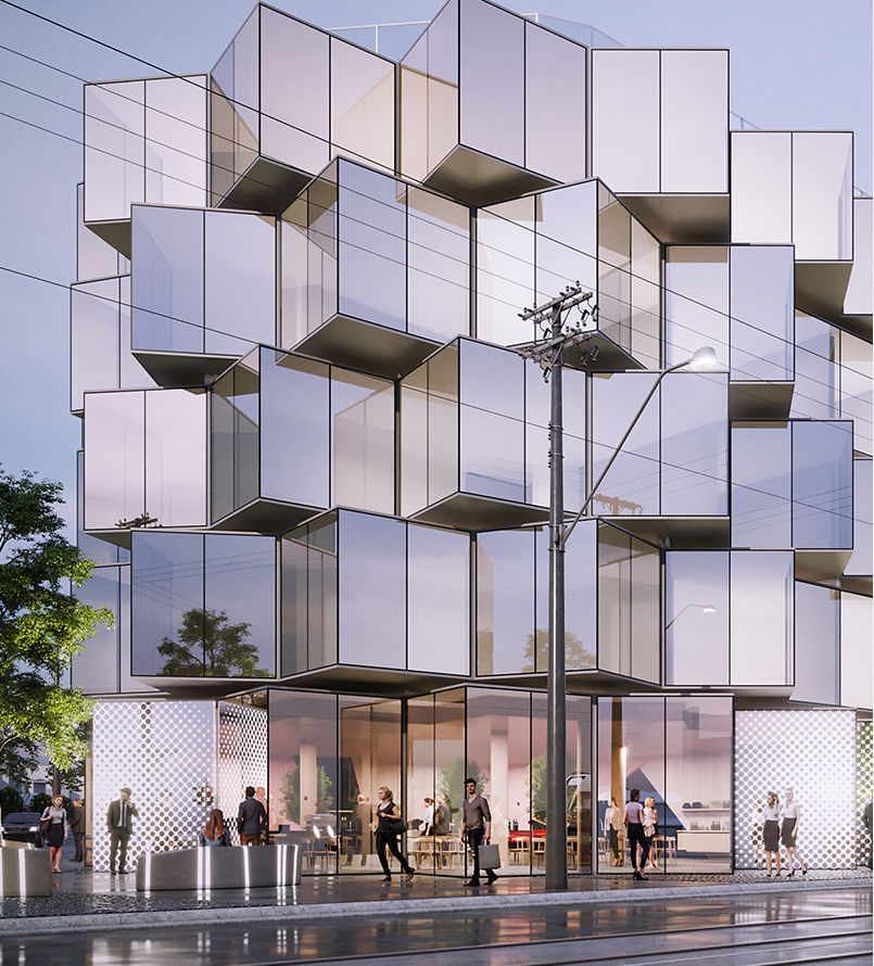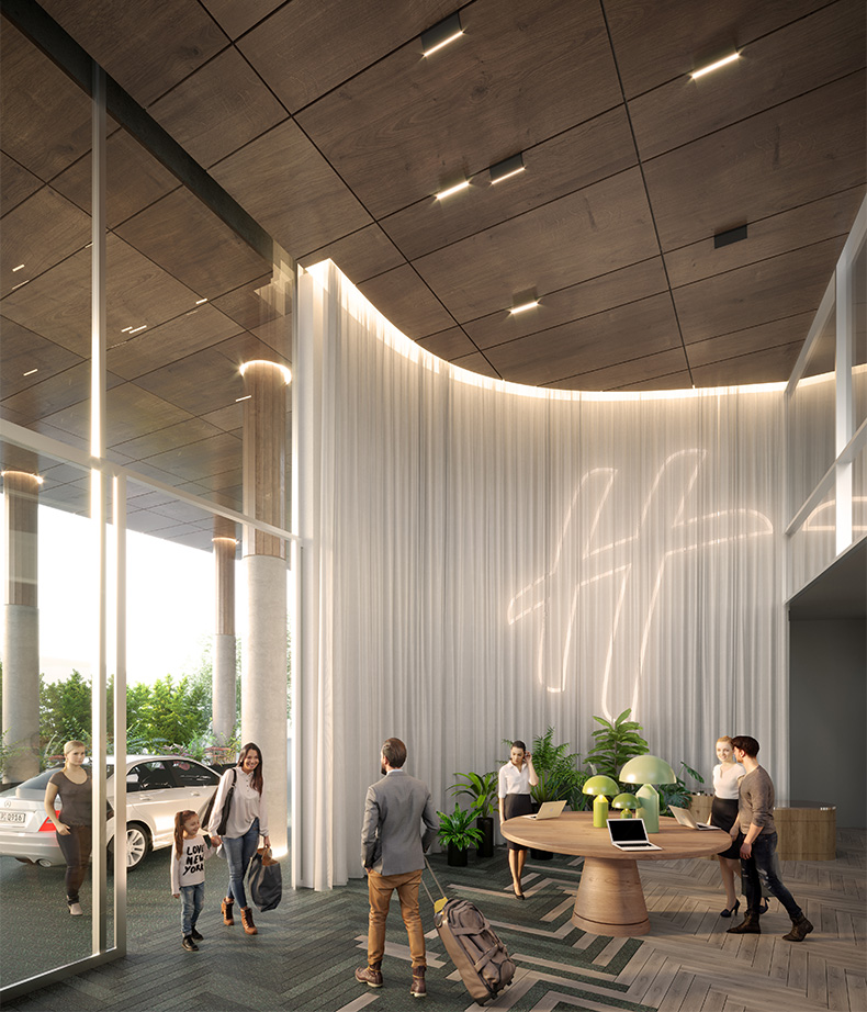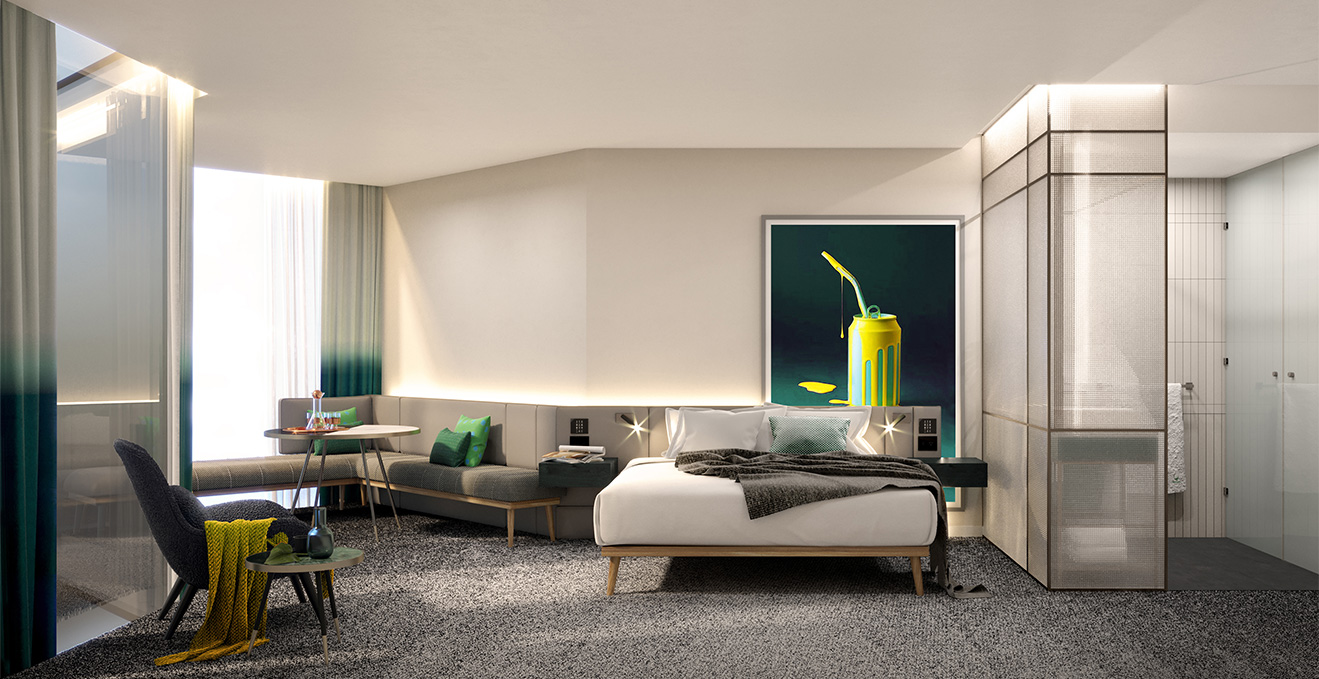 Through reflective glazing, quintessential inner urban views are observed from signature window lounges, while interactive street art engages passing foot traffic and provides a tangible public benefit for a connected neighbourhood.