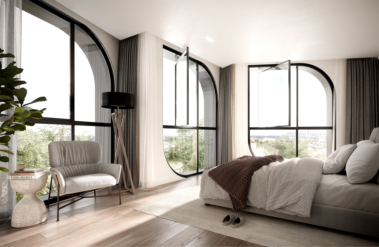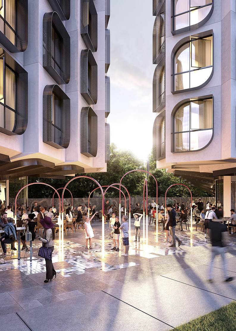 The luxury of being able to relax and watch the world pass by in a precinct ripe for modernisation has informed the concept of this landmark urban structure. The iconic filleted corners of the carriage window inspired uniquely shaped façade modules.