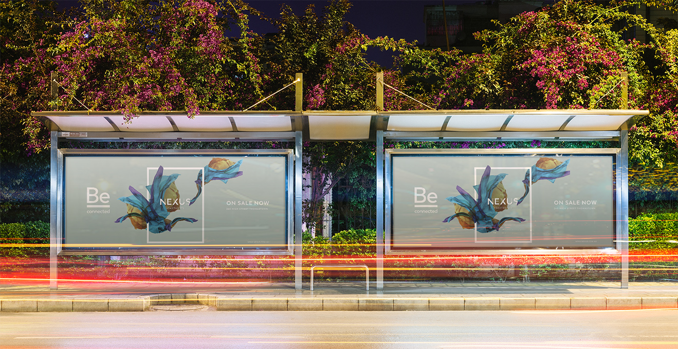 The logo was inspired by the train lines that are nearby, and the imagery we assembled was designed to impart freedom and liberation through the use of flowing waves of fabric in a palette of soothing colour tones.