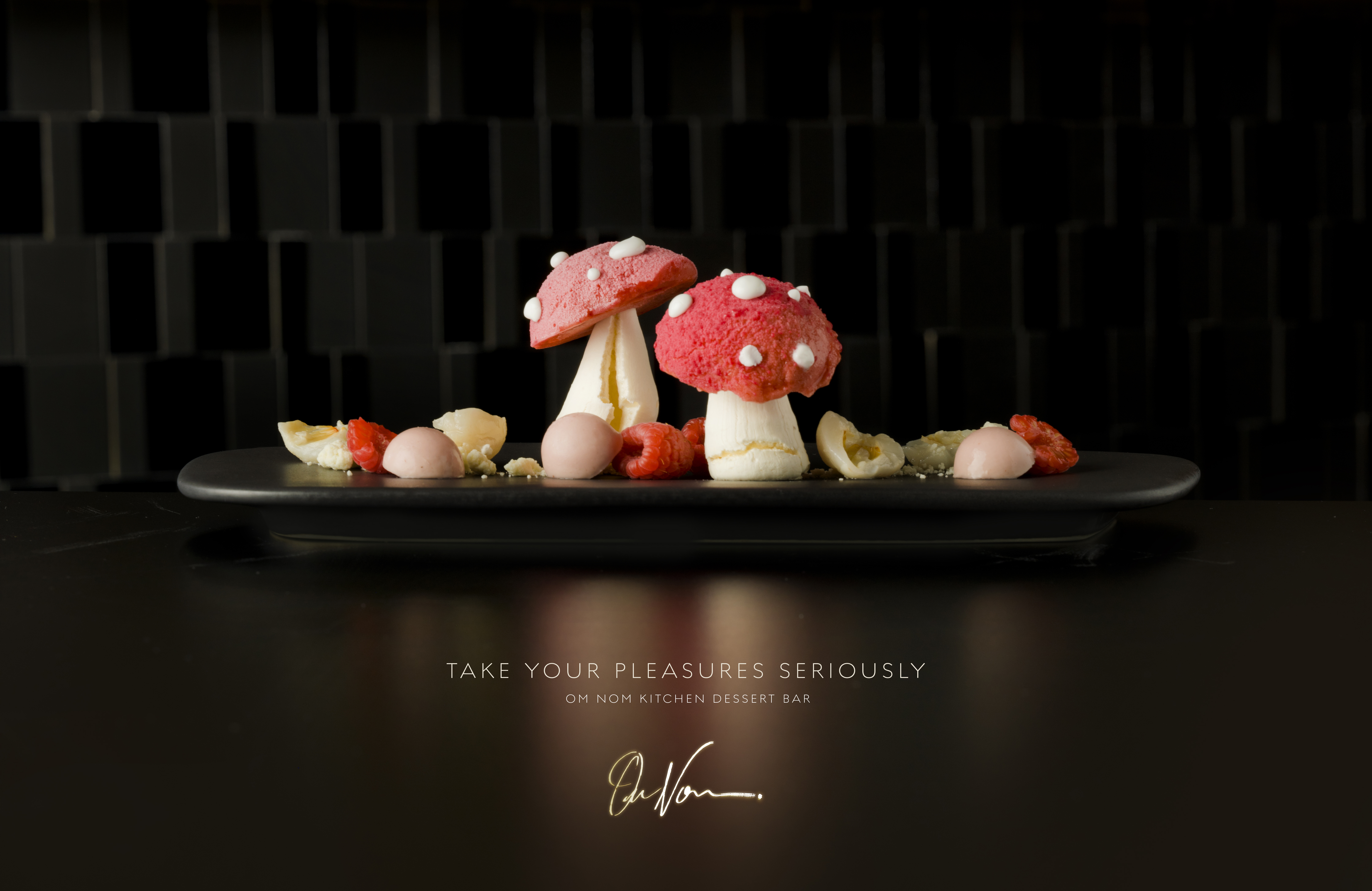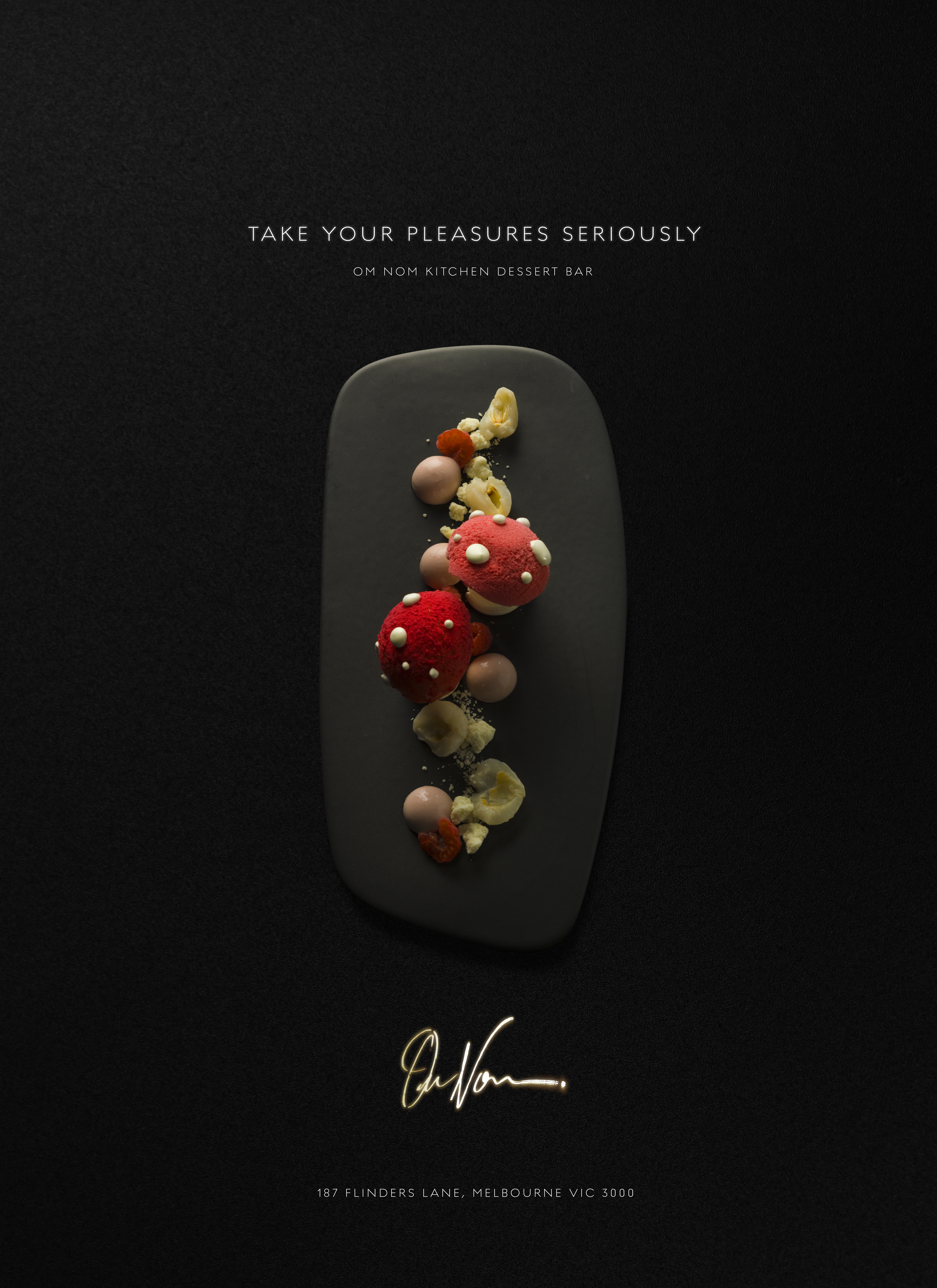 We created menus, signage, advertising and the website for Om Nom, delicately combining the sophistication expected by diners with a lighter touch that captured and amplified the mood of this unique offering. A highlight is the signature lips installation on the back wall that symbolises the sense of taste.
