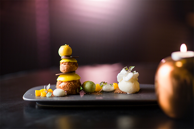 “Luxurious colour tones and textures provide an inviting backdrop and complement the artistic plate presentation.”