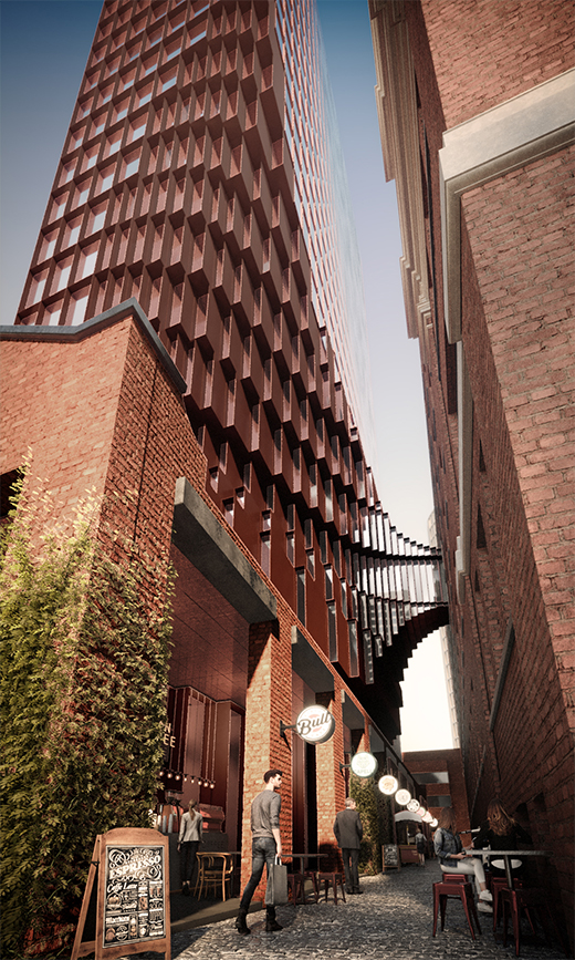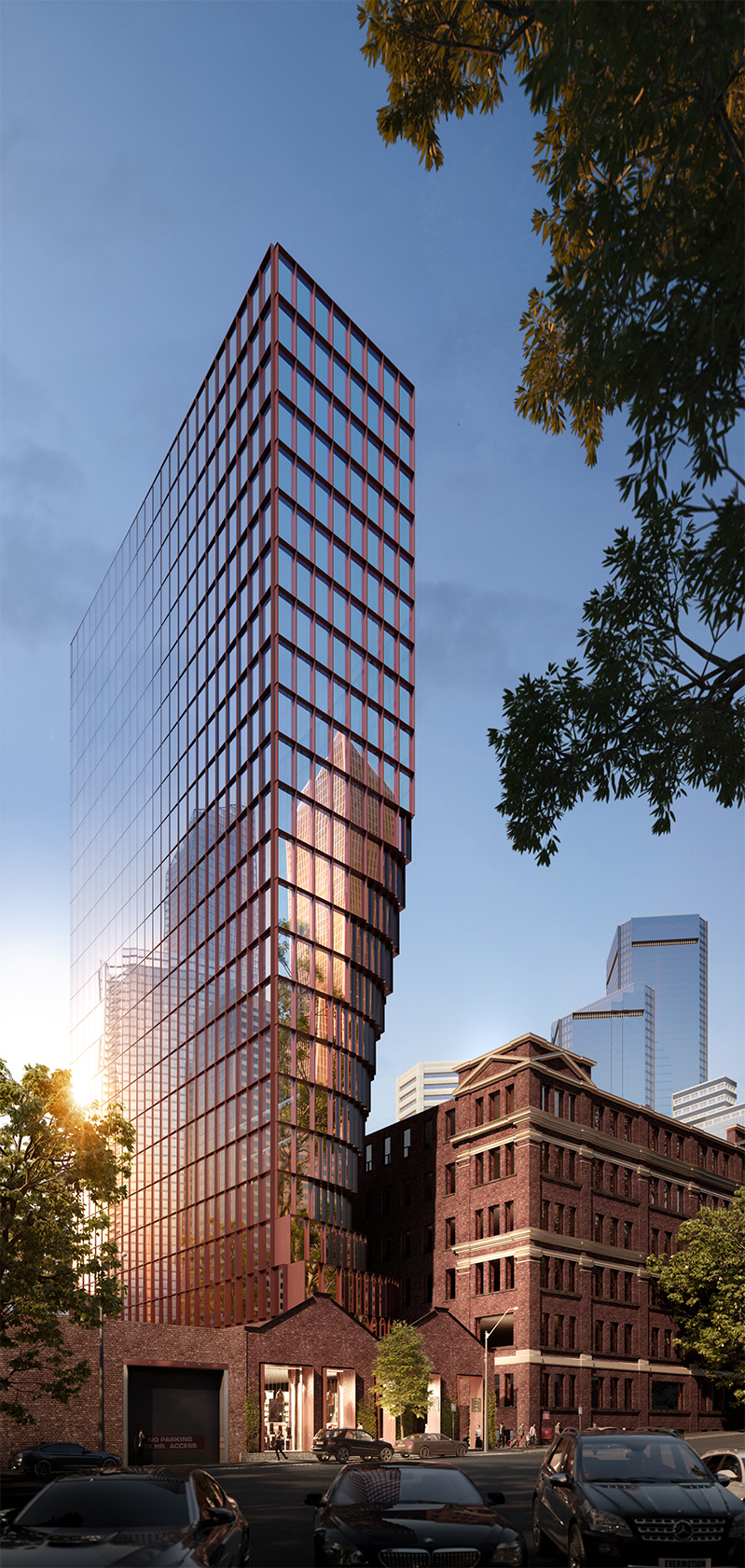 A historic printery inspired plans for a sympathetic tower design that meets the needs of a sophisticated 21st century clientele.