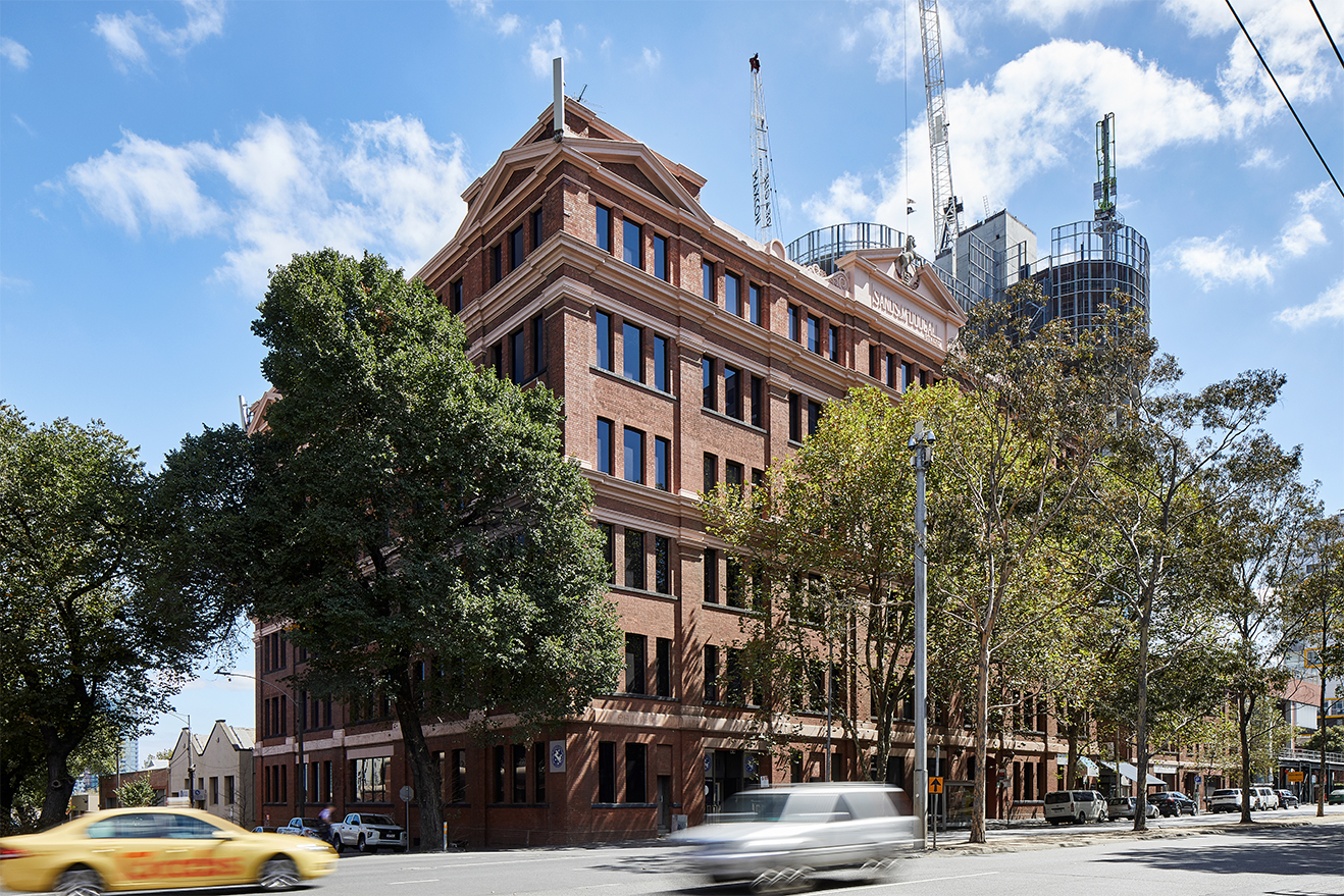 Anodised steel is employed as the modern day materiality, complementing the original building’s red brick facade